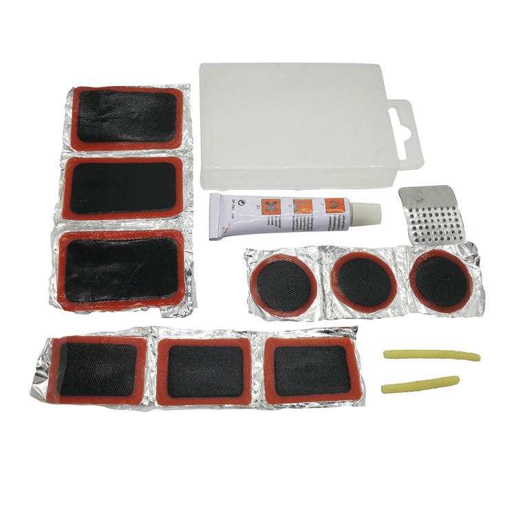 3* Round Cold Patch 3* Medium Oval Cold patch 3* Big Oval Cold Patch 1* Metal Rasp 1* Rubber Glue 2* Valve | 2* Valve caps 1*User Manual 1*Plastic Box Weight:33G Box Size:130*38*20 mm |