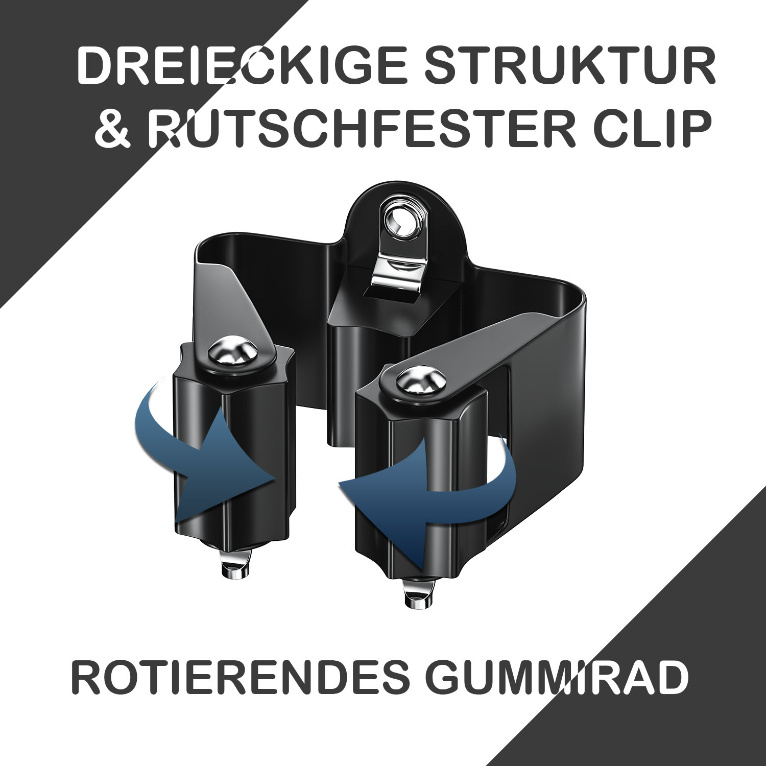 - Easy release by lifting the handle, rolling balls automatically adjust to each handle's thickness and grips it securely.