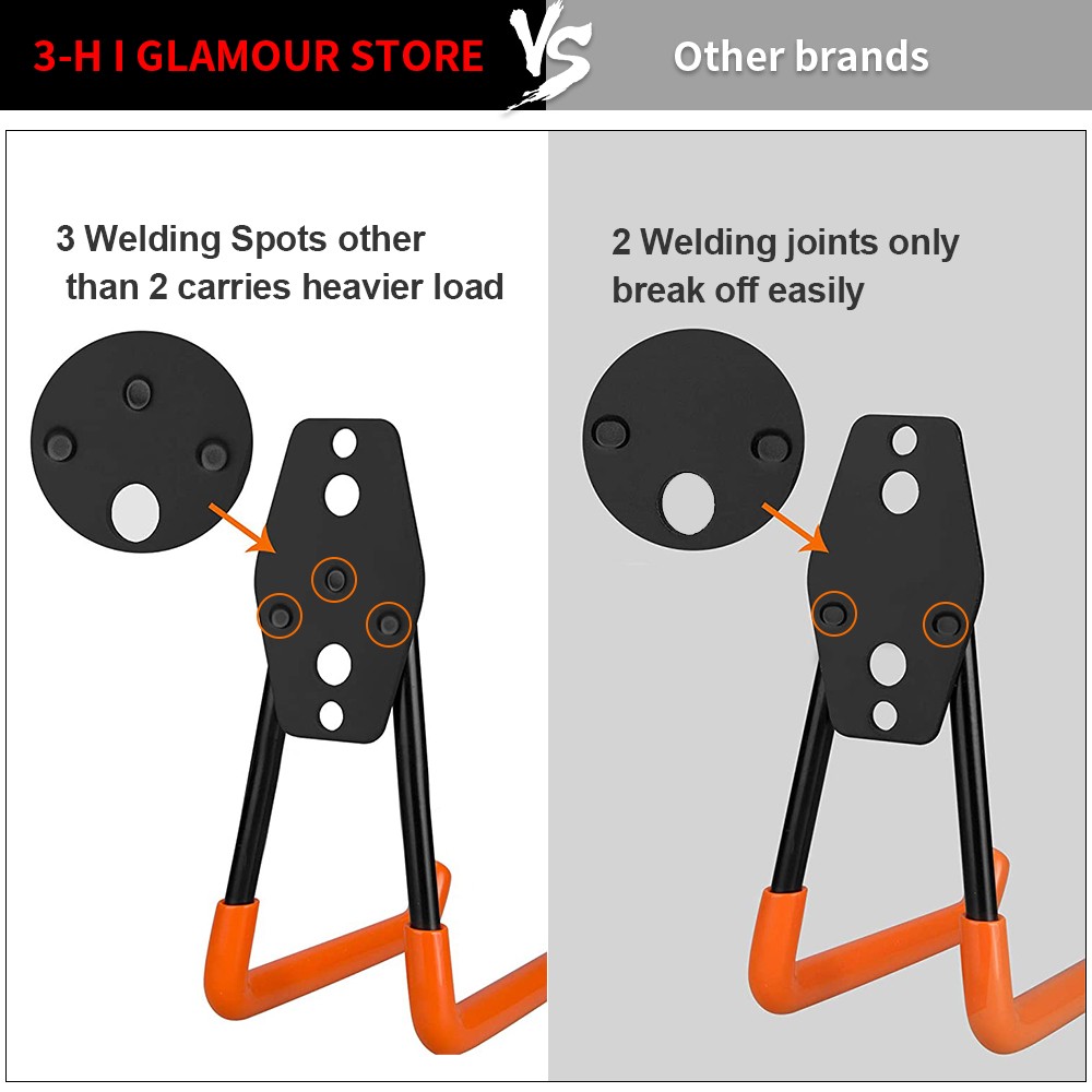 • ★--Strengthen 3 WELDING SPOTS for garage storage hooks - By welding 3 spots to connect the garden tool organizer with the base board firmly, while other similar garage hooks for hanging yard tools in market have 2 welding spots only, we provide the most secure hooks for hanging heavy duty in the market that means our perfect shed hooks can bear more weight up to 42KG/92LB.
