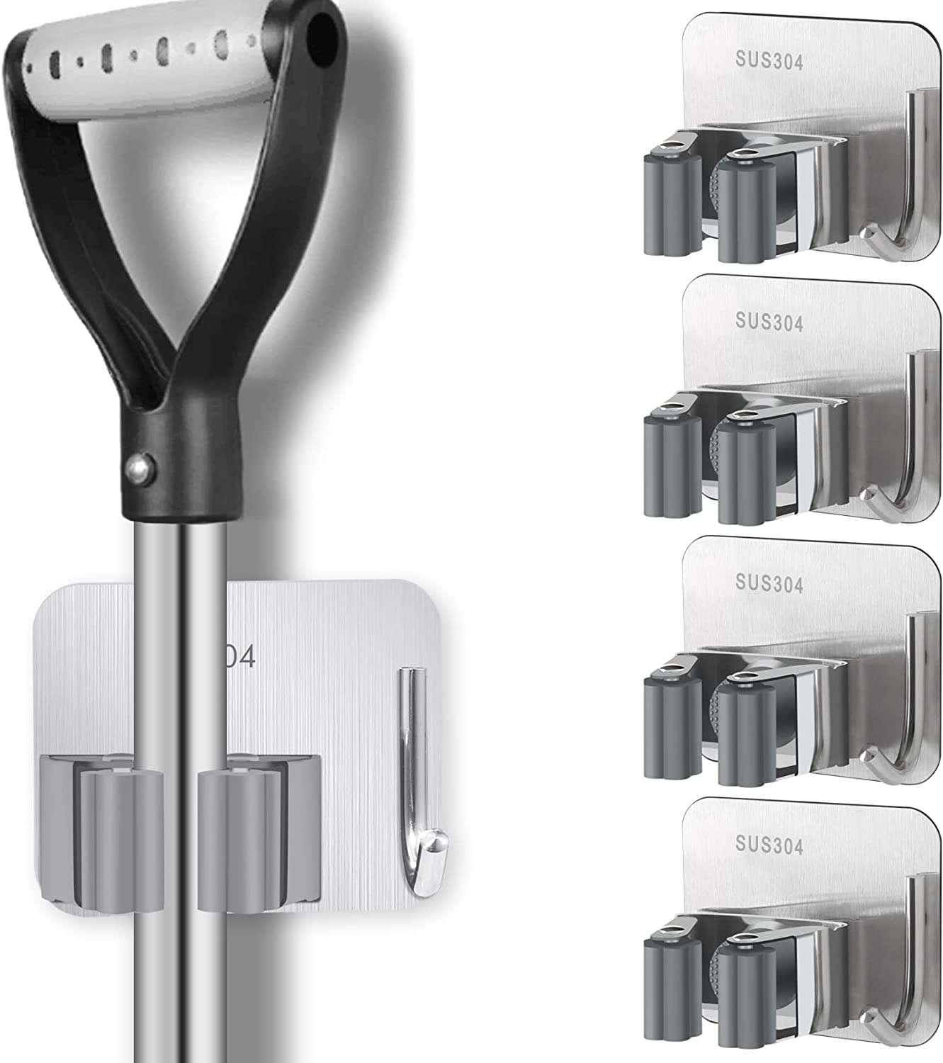 Mop and Broom Holder Rack | Stainless Steel Broom Holder Self Adhesive