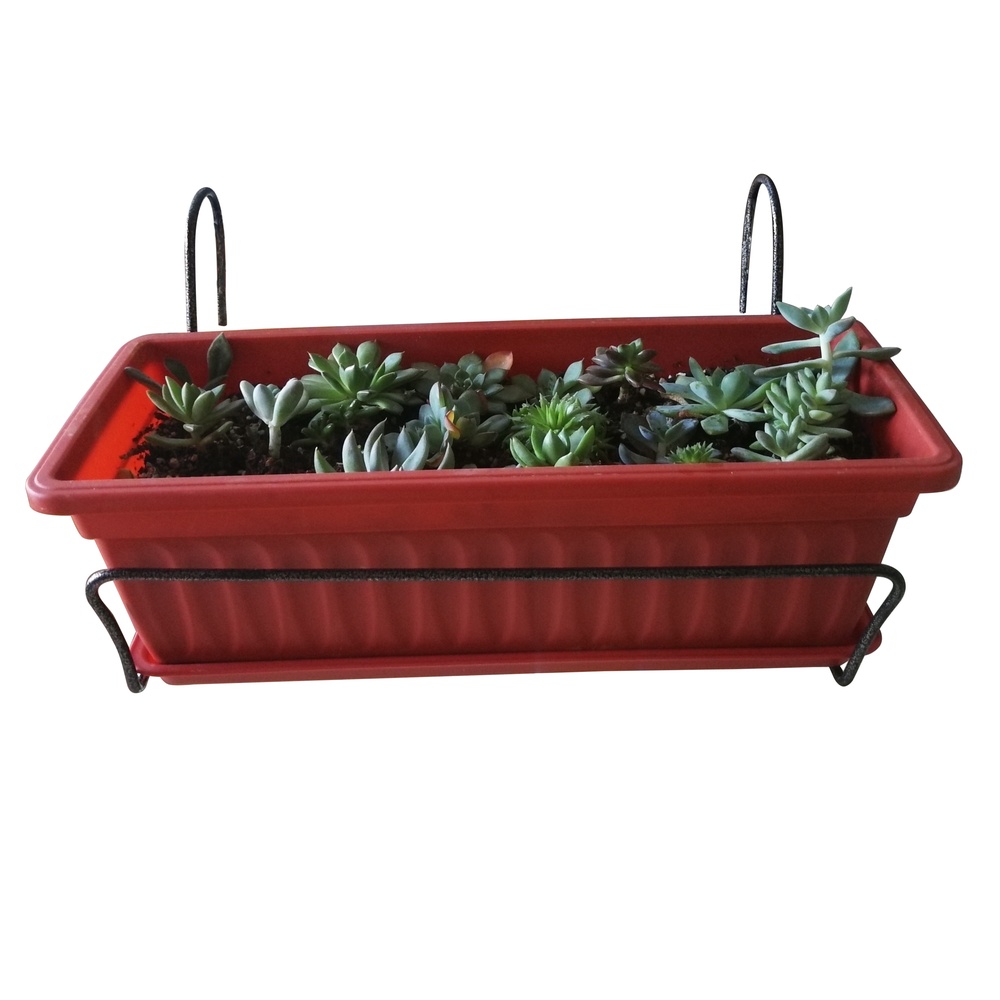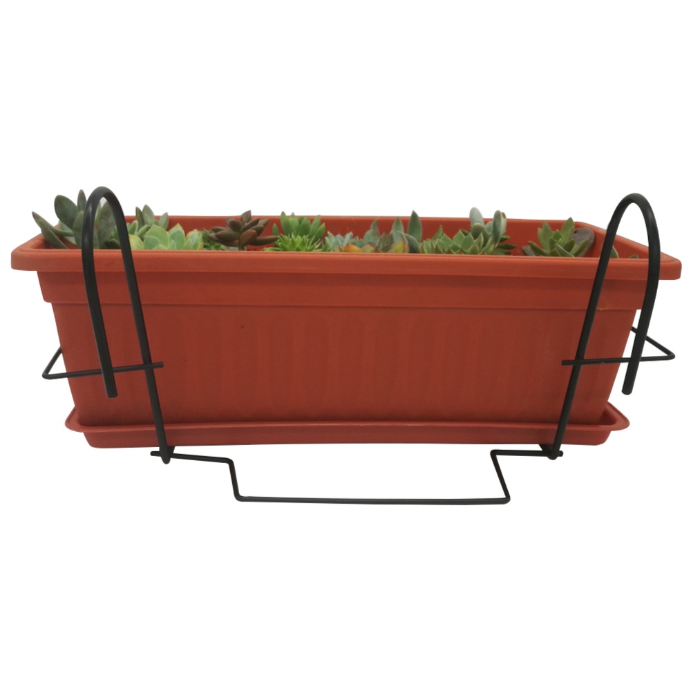 Metal flower box holder, hanging pot plant holder, Trough holder for use on balconies fences railings